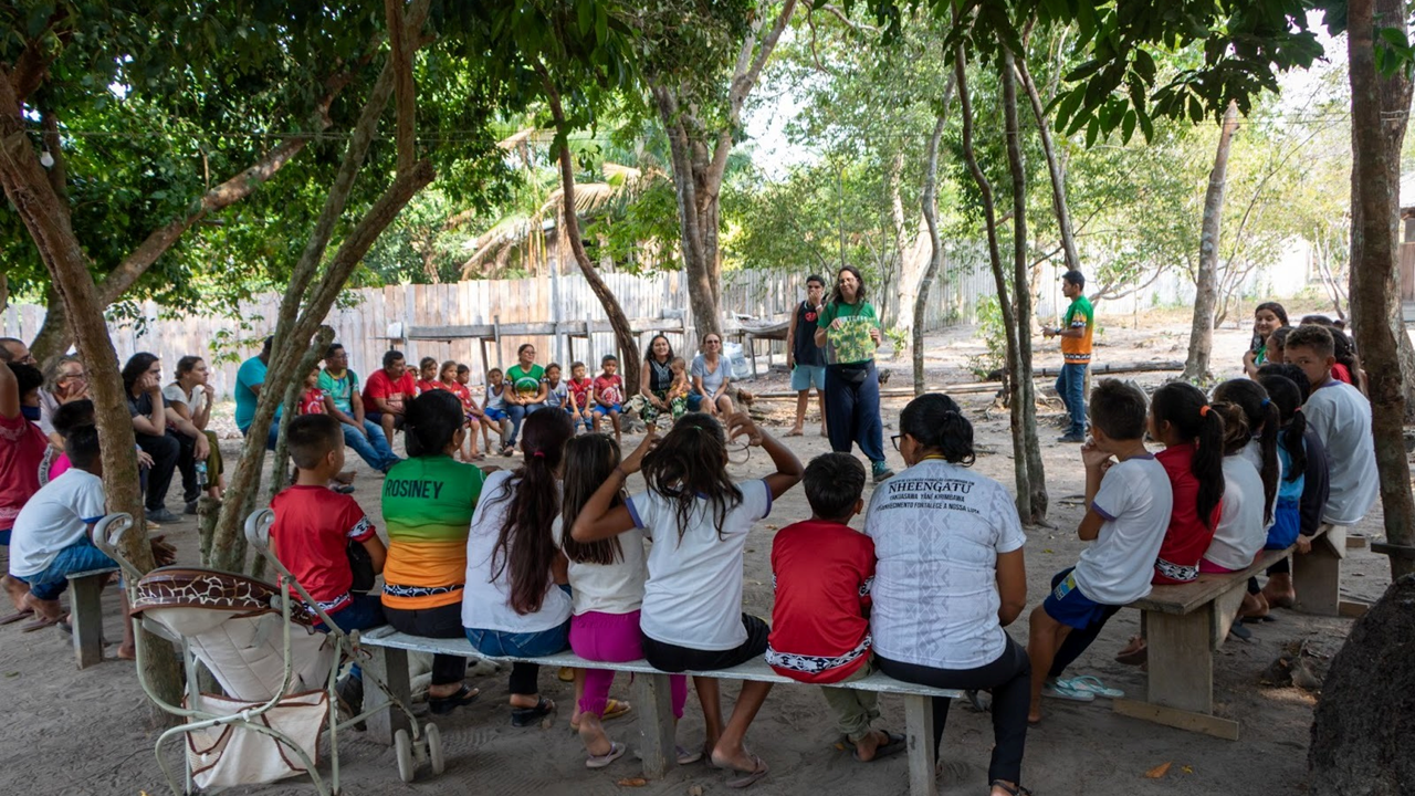 A través de la narración de cuentos, el dibujo, caminatas guiadas por la playa, la representación gráfica, la creación de historias y la producción de historietas, investigamos las percepciones de niños y jóvenes sobre los fenómenos meteorológicos extremos en la Amazonía, especialmente la grave sequía y las altas temperaturas asociadas con El Niño 2023/24, que incrementaron la inflamabilidad de la región y provocaron incendios forestales. Los niños y jóvenes registraron su comprensión de los problemas ambientales y el paisaje local: por ejemplo, el incendio forestal y la imposibilidad de pescar debido a la grave sequía.